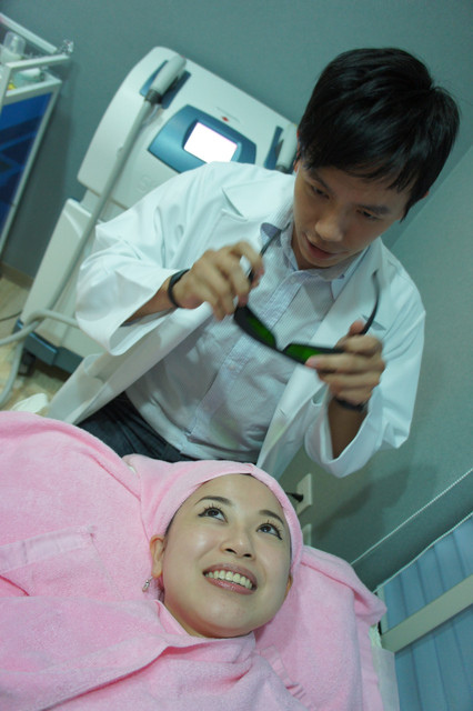 (其實我從沒打過雷射,所以還滿緊張的,但是張醫師很好笑,一直和我聊天讓我比較不緊張)
